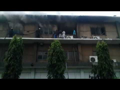 According to the eyewitness, the security man on duty said an explosion from the second floor of the building preceded the fire.